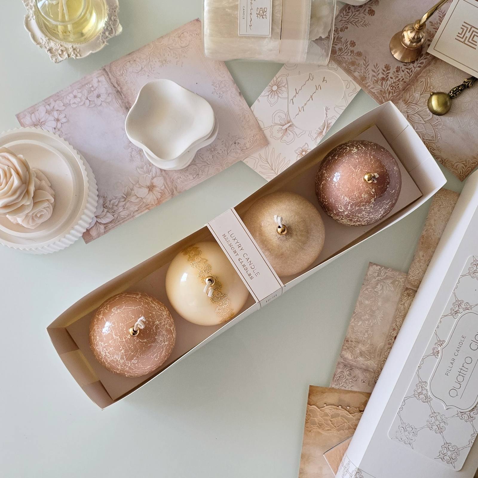 Svaka sveća izrađena je različitom tehnikom, s punom svesnošću o detalju, strukturi i izrazu. Zajedno čine vizuelnu i mirisnu kompoziciju koja se ne uklapa – ona dominira.